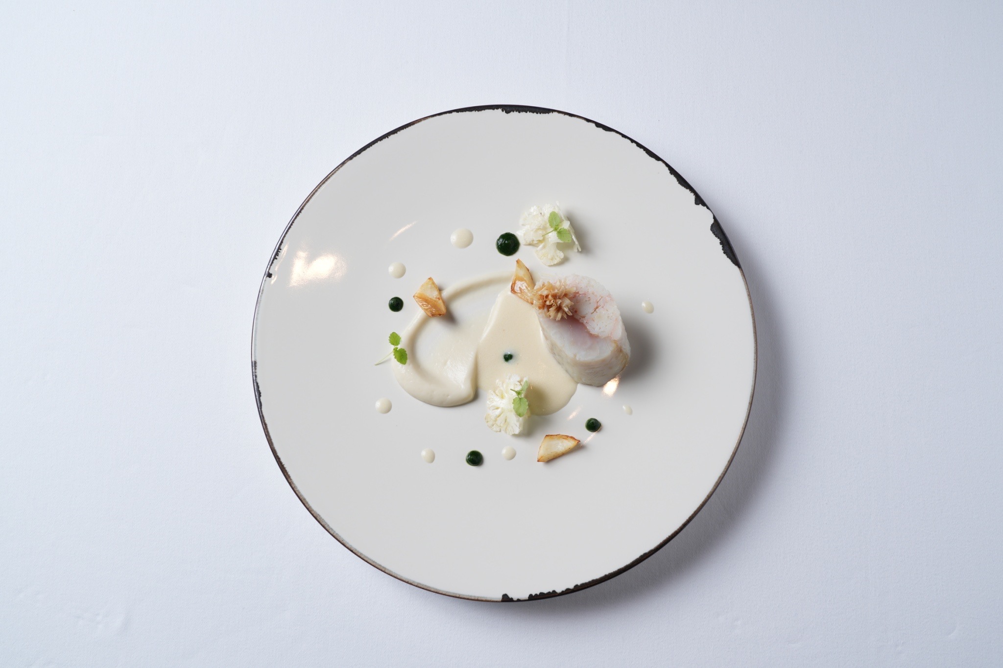 - Crabe d‘Echizen et Amadai roulé, sauce Champagne 越前がにと甘鯛のルーレ ソースシャンパーニュ